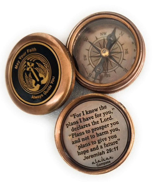 Engraved Brass Compass Religious May Your Faith Guide You - Gift for hoy communion, baptism, confirmation & graduation