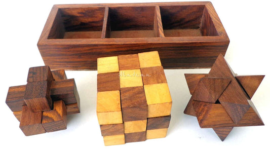 Wood Cube Puzzle Game- Set Of 3