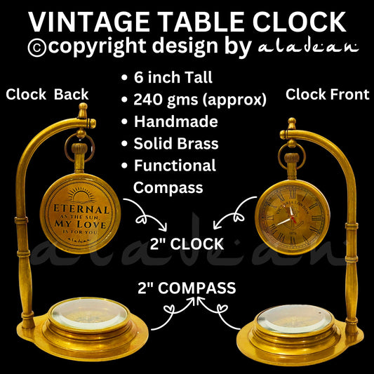 Romantische Tischuhr zum Jahrestag mit Kompass – eingraviertes Liebeszitat als Geschenk