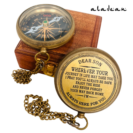 Geschenk für Sohn – gravierter Messing-Kompass-Gruß