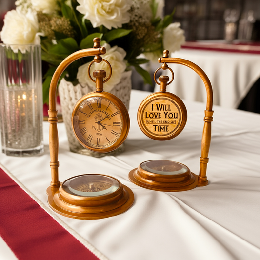 Jahrestagsgeschenk Vintage Schreibtischuhr mit Kompass - eingraviertes romantisches Liebeszitat