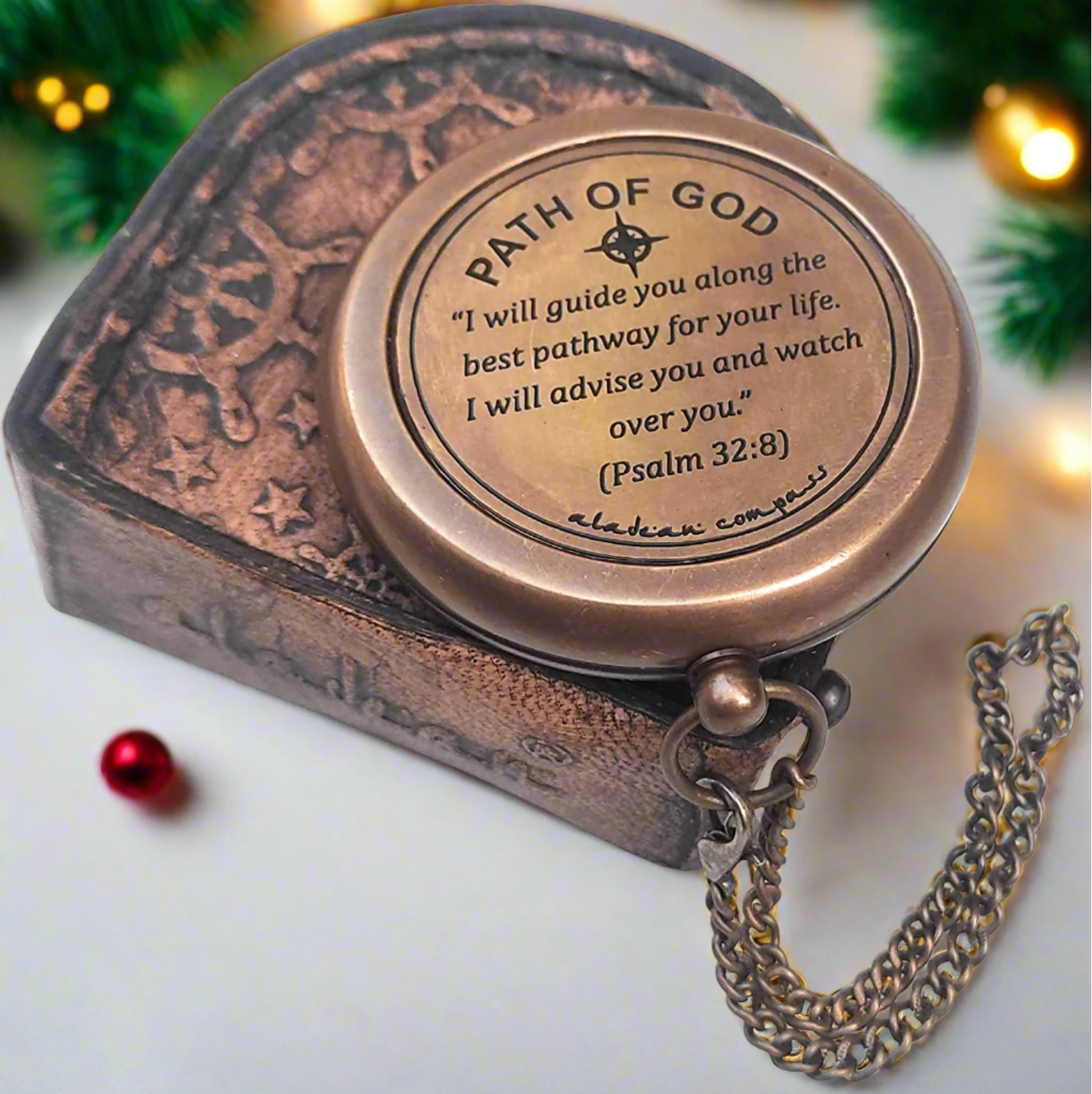 Religiöses Geschenk für Männer, Jungen, Mädchen und Frauen:- Der Kompass „Der wahre Pfad Gottes“ ist ein exquisites, handgefertigtes, antikes Navigationsinstrument, das geschickt entworfen wurde, um als ständige Erinnerung an Gottes ultimative Wahrheit und Beständigkeit zu dienen. Es führt uns fortwährend auf seinen wahren Pfad und in den wahren Norden.