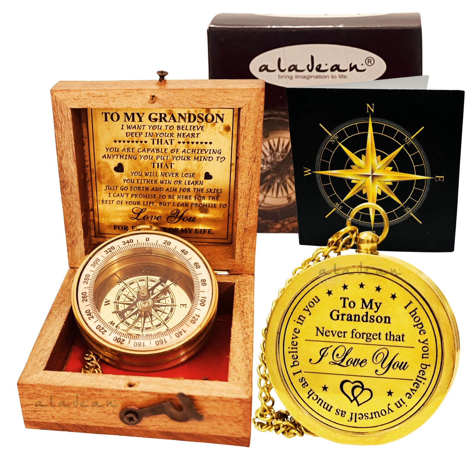 Geschenk für den Enkel von den Großeltern, Kompass für den Enkel, inspirierender Kompass für den Enkel, graviertes Kompass-Andenken, Geschenk zum Schulabschluss des Enkels, sentimentale Geschenke für den Enkel, personalisierte Geschenke für Großeltern, Aladean-Kompass, Geschenkideen für den Enkel