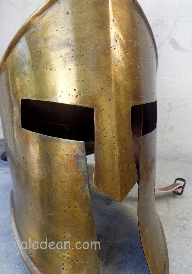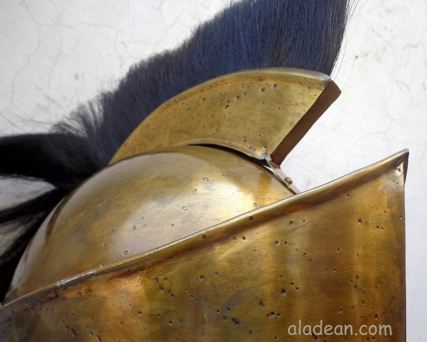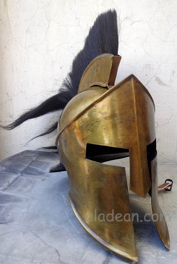 Le casque est une belle reproduction du casque d'armure spartiate romaine 300 Movie Deluxe King Leonidas, avec un panache noir. Il est apprécié des clients pour sa qualité optimale et ses normes élevées. Ce casque de cinéma romain King Leonidas de qualité supérieure est plaqué en laiton antique pour un look plus authentique et est assemblé à la main.
