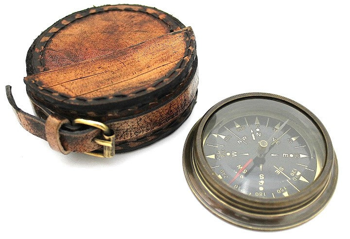 Enfermée dans un étui en cuir durable, la boussole mesure 6 cm x 1,5 cm, ce qui la rend compacte et portable. La boussole en laiton n'est pas seulement un outil pratique pour la navigation, mais aussi une belle œuvre d'art qui peut constituer un ajout unique à toute collection.