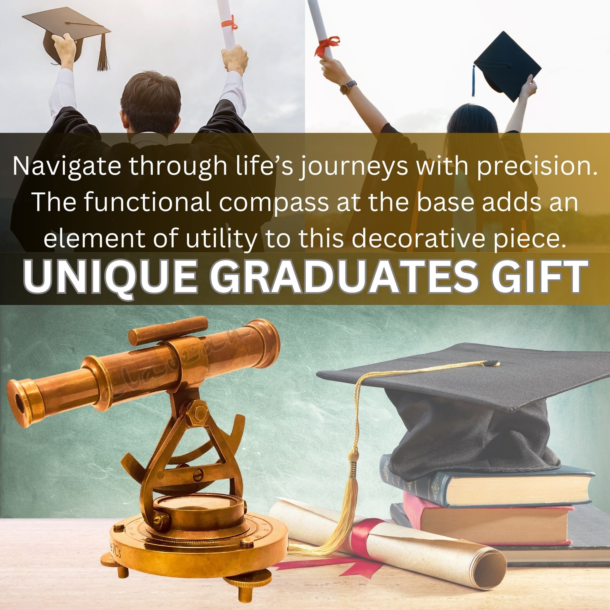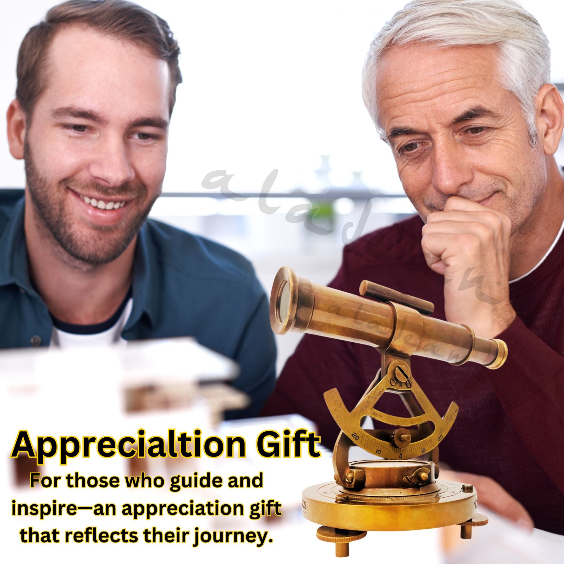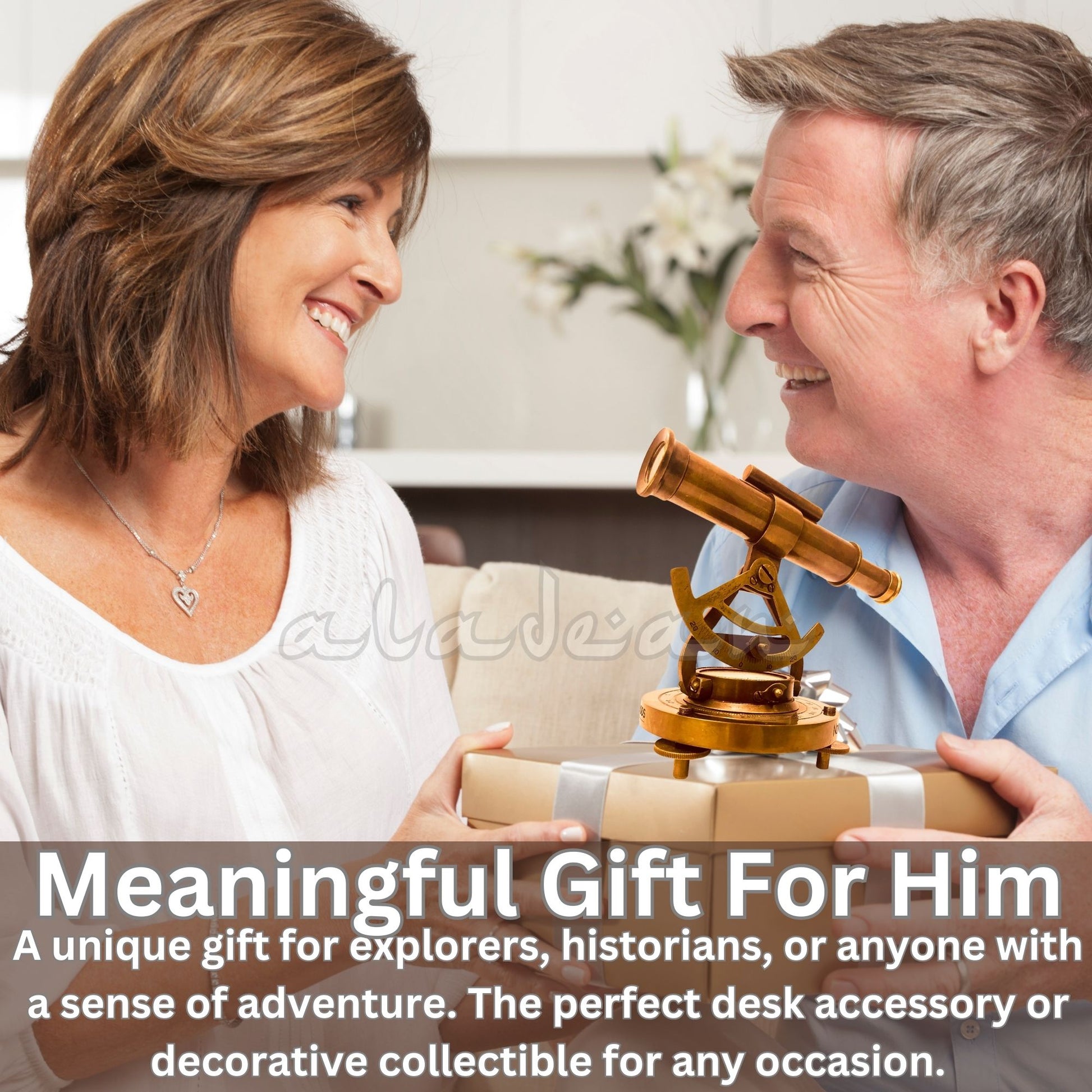 This handmade Brass Alidade Telescope is more than just a decorative item—it's a meaningful, inspirational gift for men and women of all ages. Ideal for Christmas, Valentine's Day, Thanksgiving, Baptism, or Confirmation, it's the perfect gift for Father, Mother, Husband, Wife, Son, Daughter, Brother, Sister, or even Teachers and Grandparents. Let this nautical treasure symbolize exploration and discovery for your loved ones.