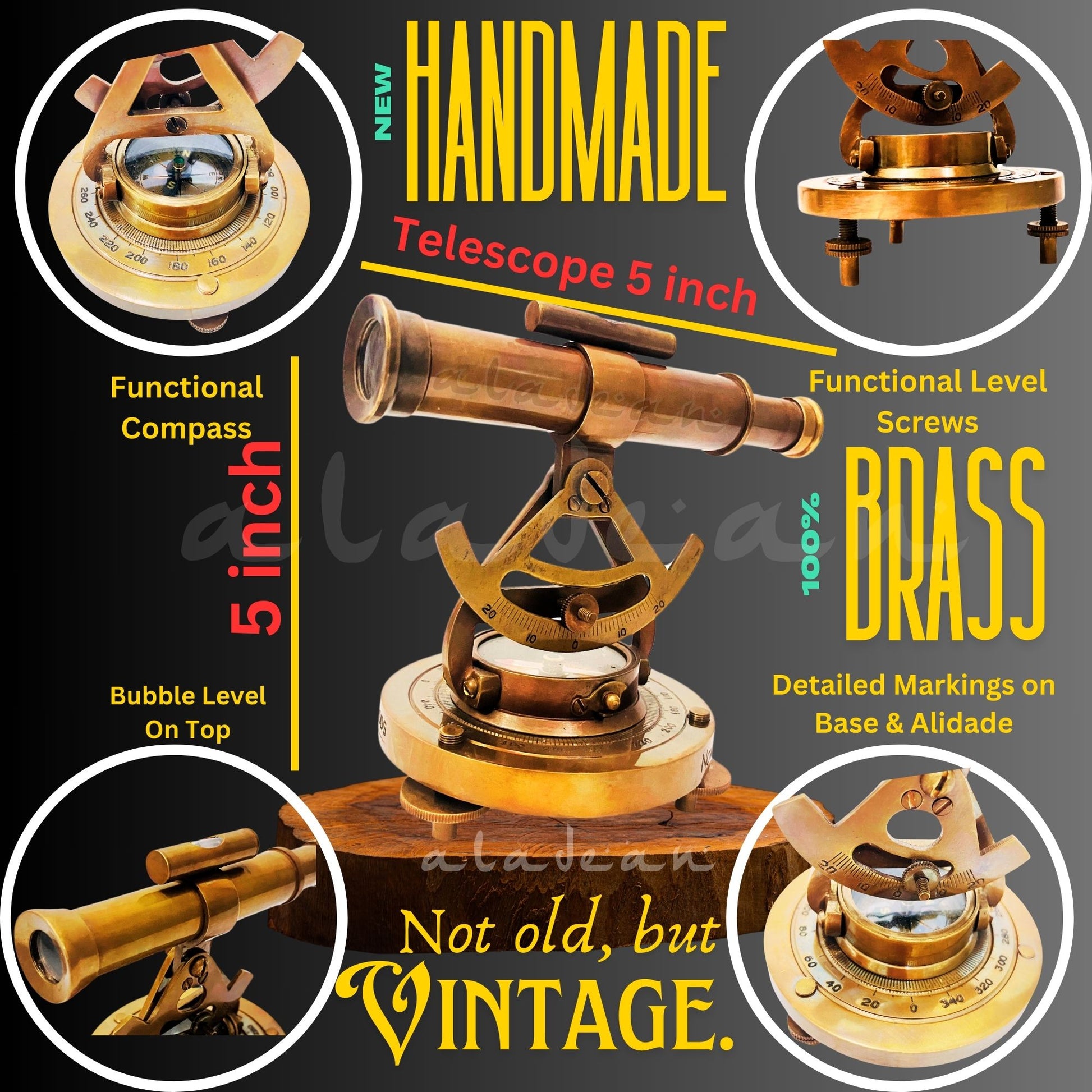 5-Inch Handmade Brass Alidade Telescope with Compass – Perfect Gift for Engineers, Scientists, and Explorers