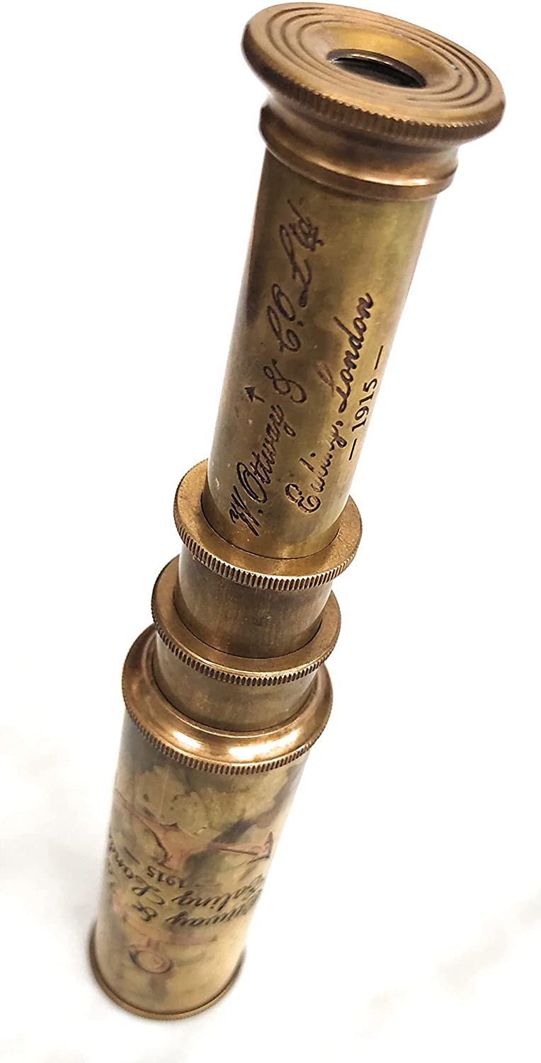 - Taille parfaite et facile à transporter : ce télescope longue-vue en laiton au fini antique mesure 30,5 cm lorsqu'il est entièrement déployé. Il s'effondre à 4,5 pouces une fois plié. C'est donc une longue-vue parfaite pour les voyages en bateau, le camping, l'observation des oiseaux ou les excursions à cheval.