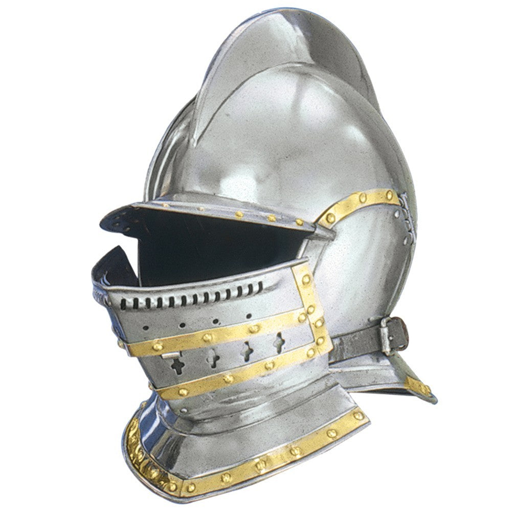 Présentation du casque d'armure Burgonet, un chef-d'œuvre de l'artisanat d'Aladean. Ce casque est un mélange parfait d'authenticité historique et de techniques de fabrication modernes.