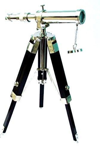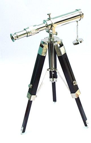 Brass Telescope 10" Chrome With Wood Tripod Stand