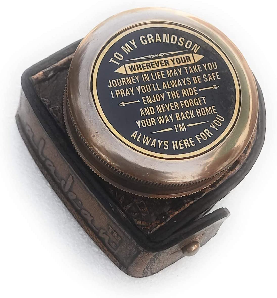 - Gift for Grandson from grandpa Grandma - Engraved Antique Style Brass Compass - Reinforcing & Reminder of Love & confidence for Grandson's Gift idea for boys on Birthday, Baptism, Confirmation, Graduation gift for Him, Boy from grand mother & grand father