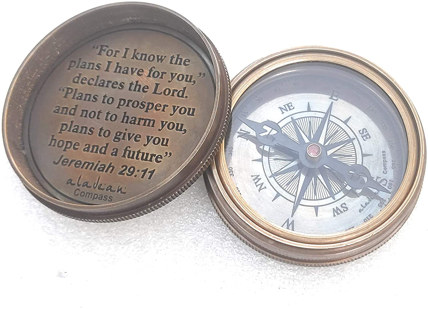 - 1st First Communion Grandson Gift Idea :- Handmade Quote Engraved compass 2 inch (approx.) comes in hand stitched leather case that makes a perfect belt holster. A wonderful gadget to carry along while camping, scout camp, boating, hiking, traveling & riding. Kids would love to learn the lessons of directions with this functional vintage look compass