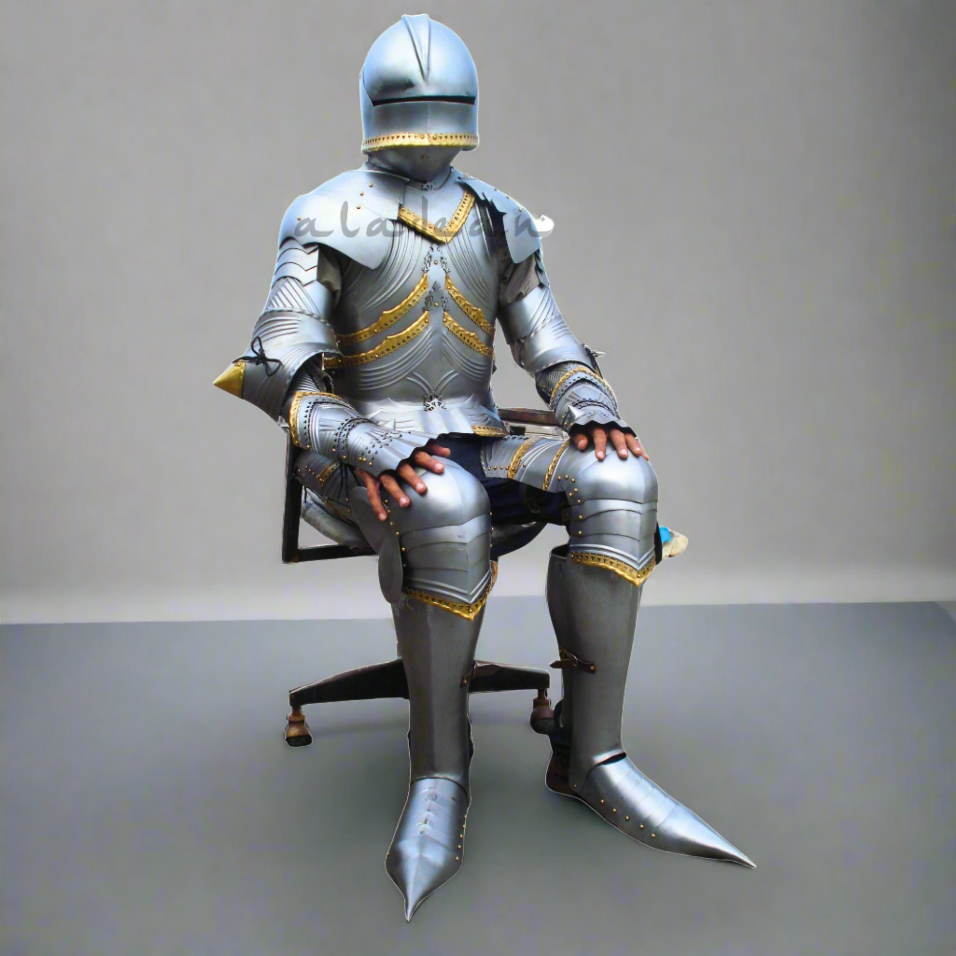 Wearing this armor is more than a tribute to history; it's a statement of power and fashion. The intricate detailing and luxurious finish make this piece a standout item that will be admired for generations. Whether you are a historical reenactor or a collector of fine medieval artifacts, this armor represents a unique blend of style and strength.