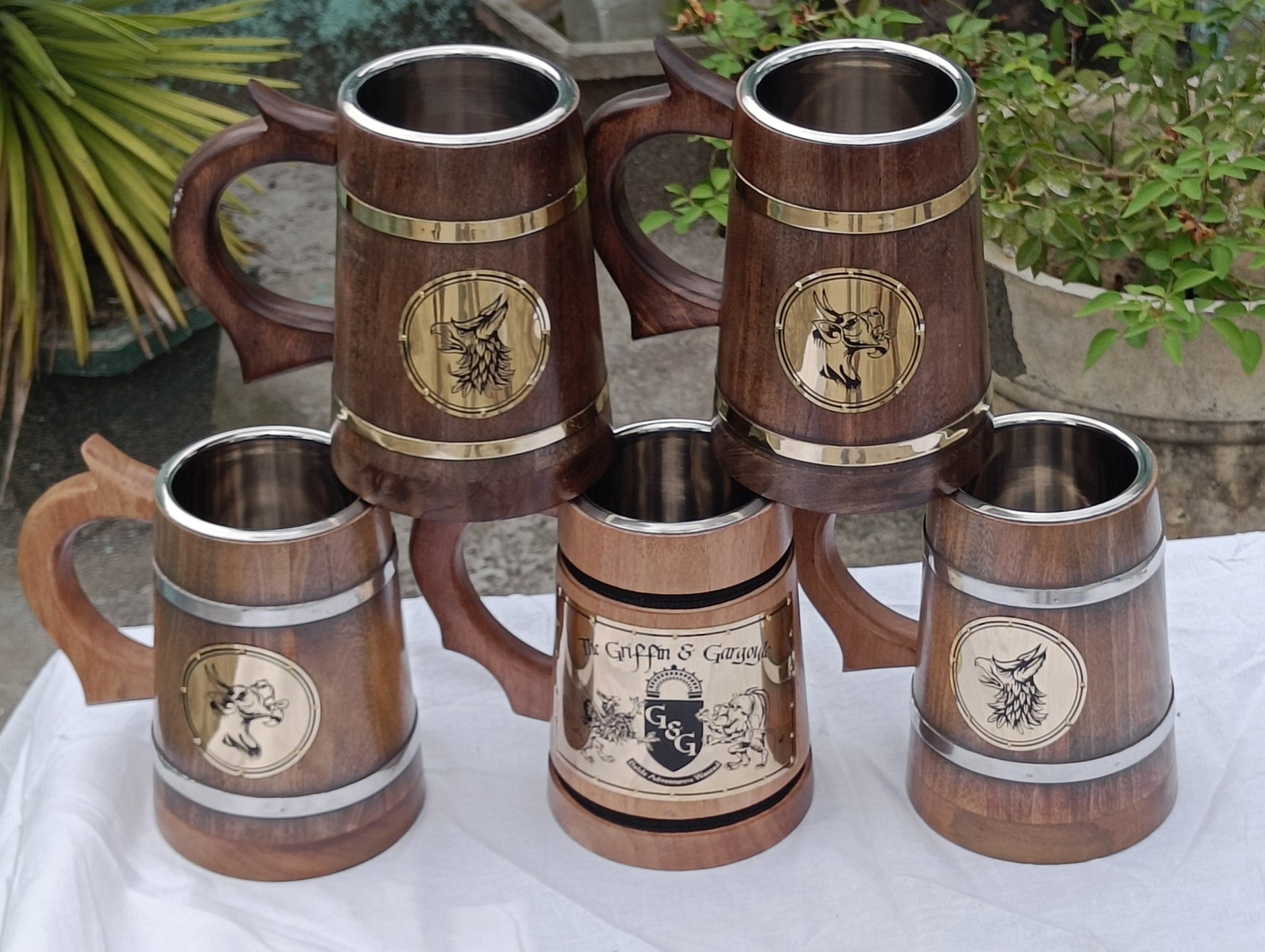 Craftsmanship: Expertly hand crafted by skilled artisans, each wooden beer mug is carved from premium quality solid wood and fitted with a stainless steel layer inside. The solid wood exterior is engraved with intricate details, inspired by Nordic folklore and tradition, adding a touch of rustic charm and elegance to every sip.