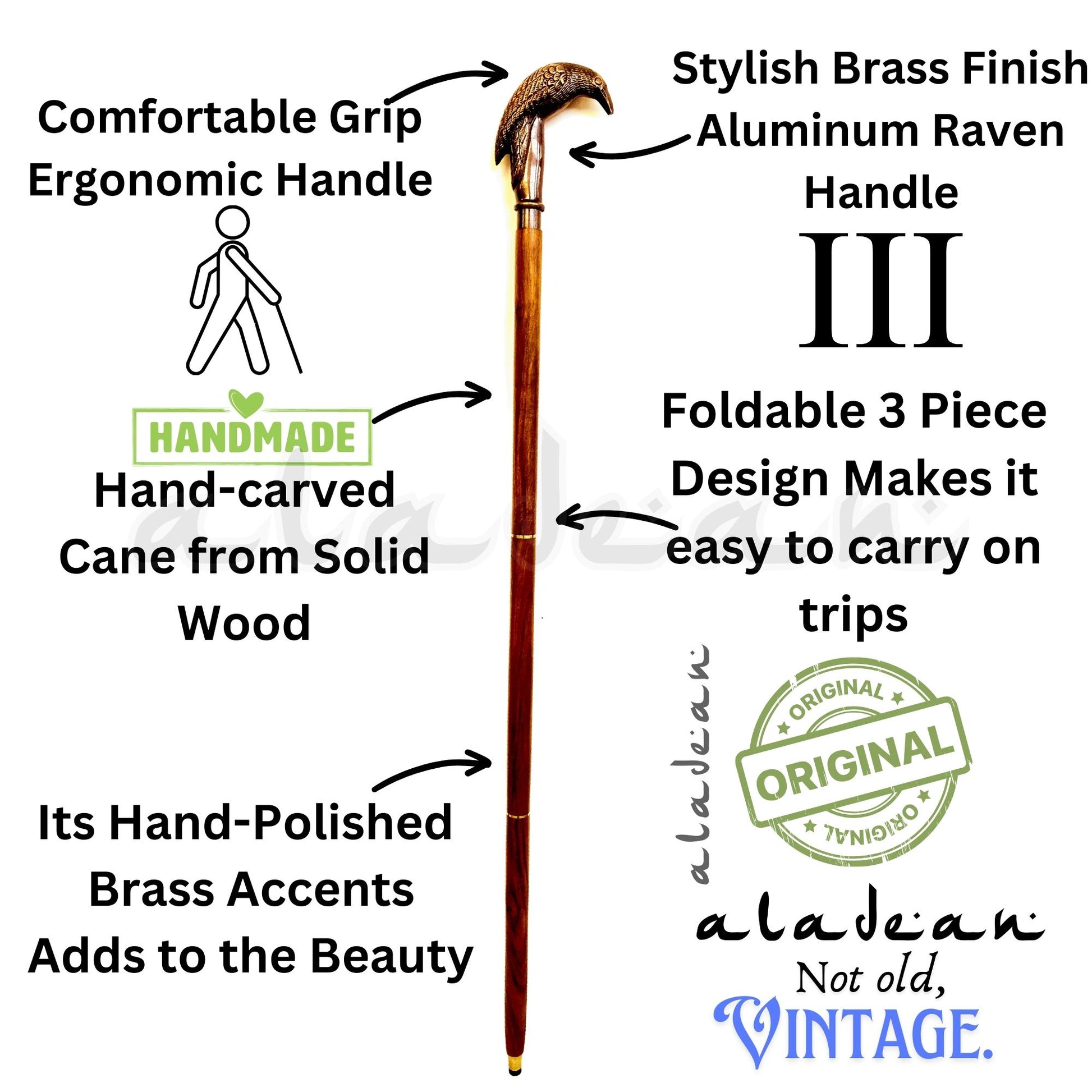 Aladean’s Raven Handle Walking Cane Stick – A Blend of Power, History, and Elegance