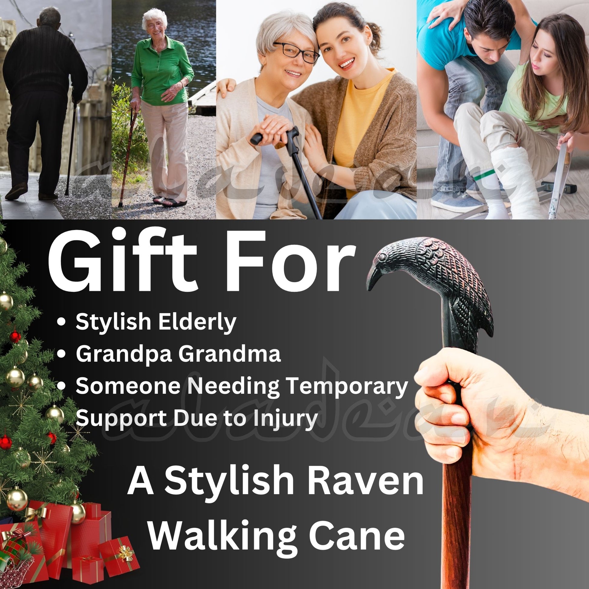 Discover the allure of the raven, and make every stride an expression of elegance and mystery with Aladean’s Raven Handle Walking Cane Stick.