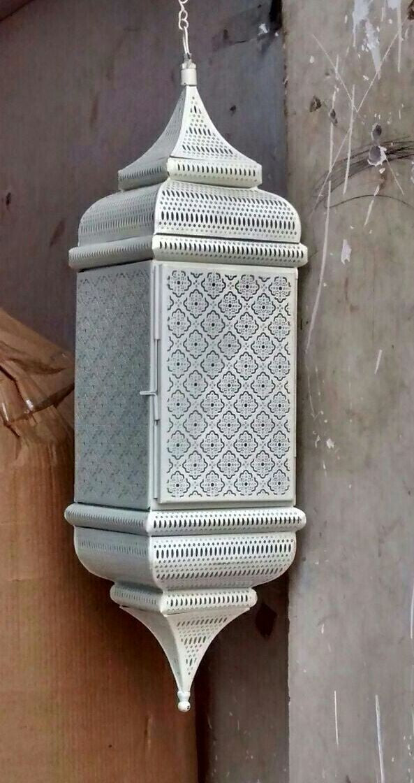 Introducing our White Moroccan Lamp, a high-quality metal lamp featuring a classic Moroccan pattern. This hanging lamp is not only a source of light but also a statement piece that adds a touch of elegance to any room.